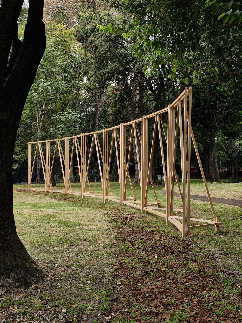 Desarrollo, fabricación y montaje de una estructura efímera construida en madera de pino, concebida como soporte espacial para el poema del poeta chileno Raúl Zurita, invitado al festival Poesía en Voz Alta 2025 en Casa del Lago.